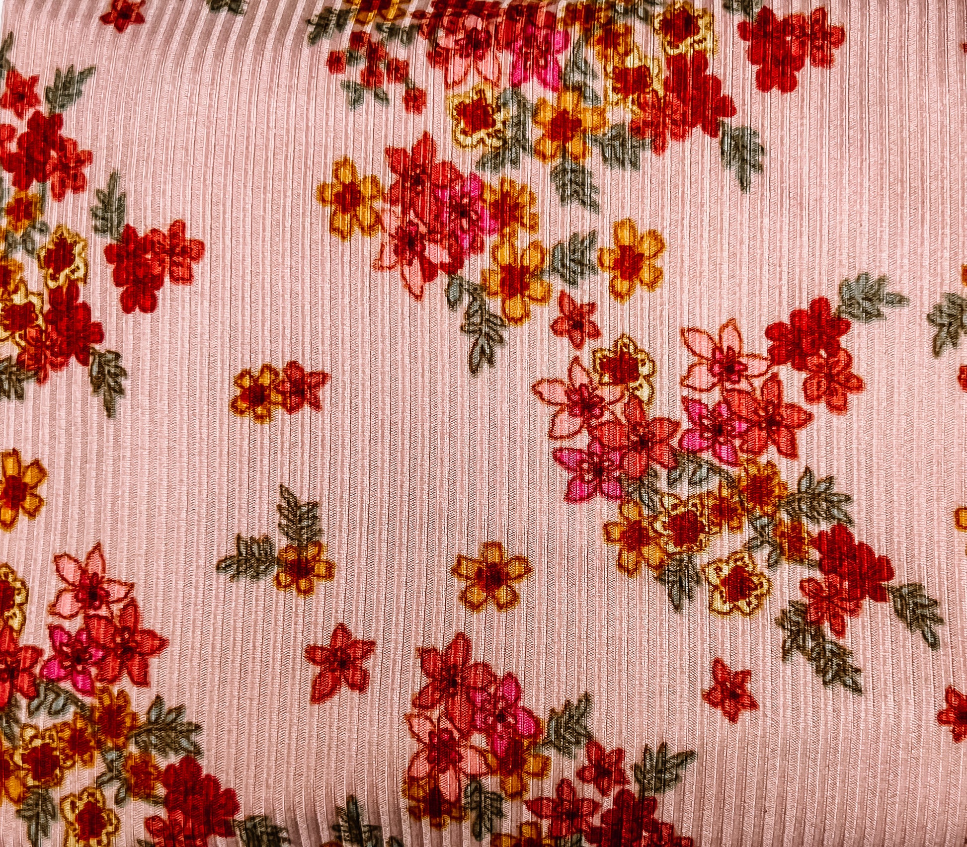 Pink Ribbed Floral - Single Bow